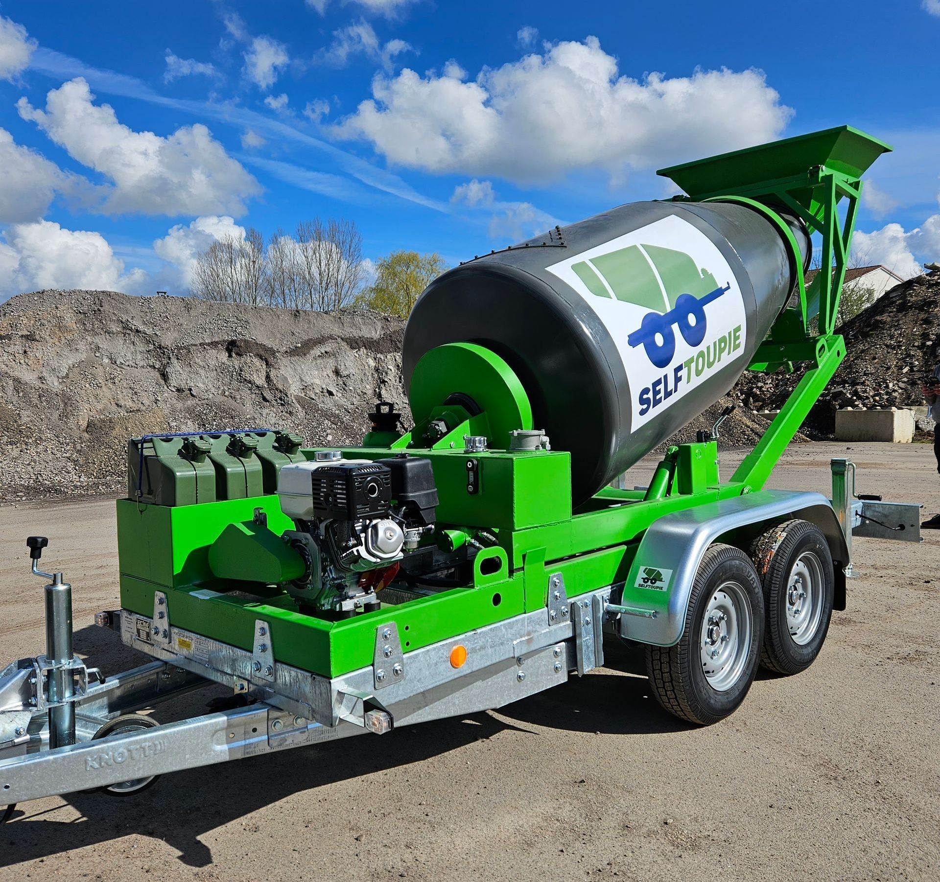 SELFTOUPIE est une mini-toupie sur remorque tractable par un véhicule léger permettant de transporter des petites quantités de béton jusqu'à 1000L. SELFTOUPIE est parfaitement adapté à la livraison des petits chantiers ou des chantiers d'accès difficiles.SELFTOUPIE augmentant la productivité sur les chantiers et rend désormais accessible le transport et la livraison de BPE fluide, même pour les très petites quantités. .